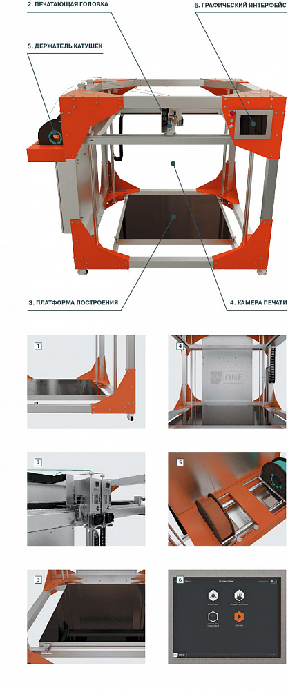 - большая камера печати более чем 1м3, позволяющая печатать изделие в натуральную величину, без склейки отдельных составных частей