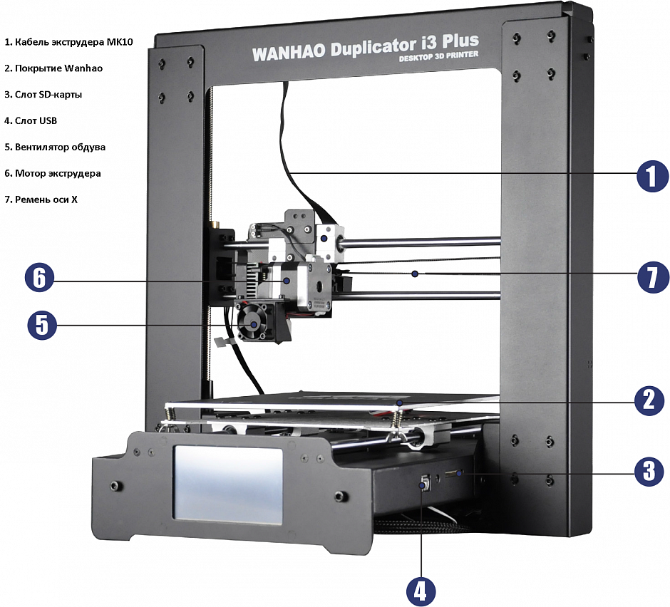 3D принтер Wanhao Duplicator i3 Plus от китайской компании Wanhao представляет дальнейшее развитие популярной модели Wanhao Duplicator i3. Производитель оснастил оборудование одним экструдером МК10, который имеет сопло диаметром 0,4 мм. Платформа устройства подогревается, а для большей простоты и комфорта оператора имеется встроенный дисплей с сенсорным экраном. Принтер имеет кабель экструдера, применяемый а ЧПУ-станках. Параметры области построения принтера: 200 х 200 х 180 мм. Для повышения стабильности печати и предотвращения вибраций экструдера во время работы в устройстве установлены 3 подшипника скольжения на экструдер.