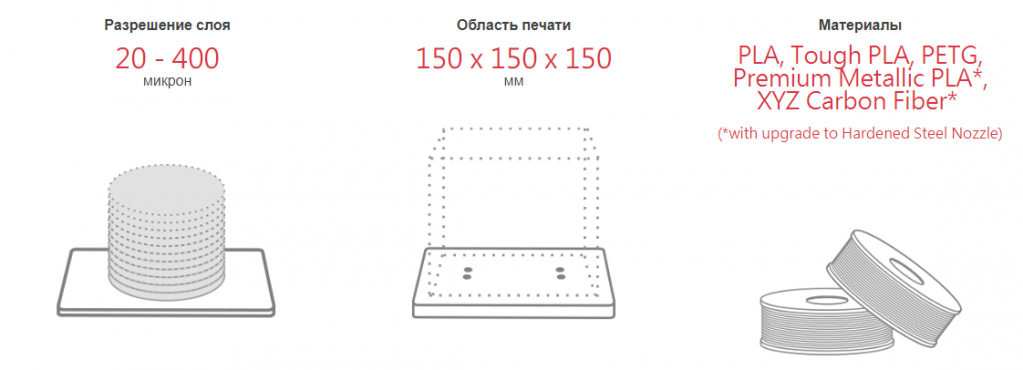 Оптимизируйте качество печати. Вы можете использовать широкий спектр пластиковых нитей, в том числе PLA, PETG или иные материалы, а также настроить XYZprint в соответствии с особенностями материала. Принтер поддерживает G-коды из таких программ как Cura или Sli3cr и позволяет печатать с SD карты.